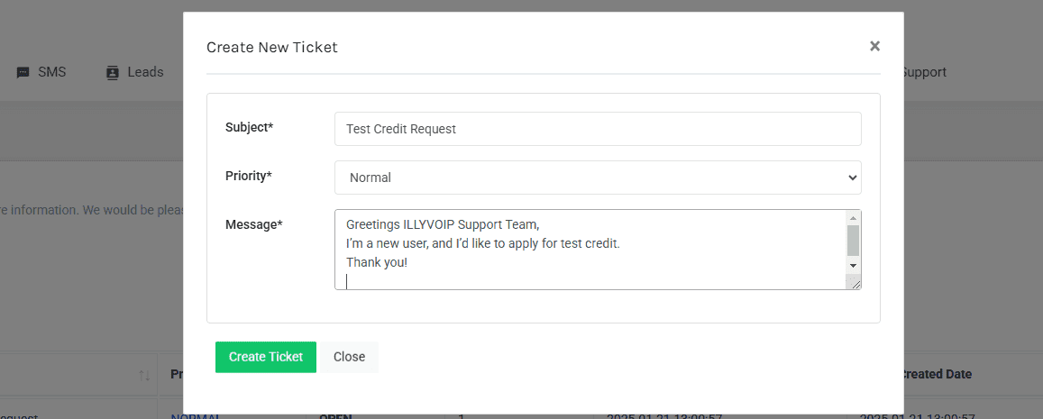 Need test credit? To apply for test credit, just contact our support team. Navigate to Support, click on Create a Ticket, and we’ll take care of the rest!