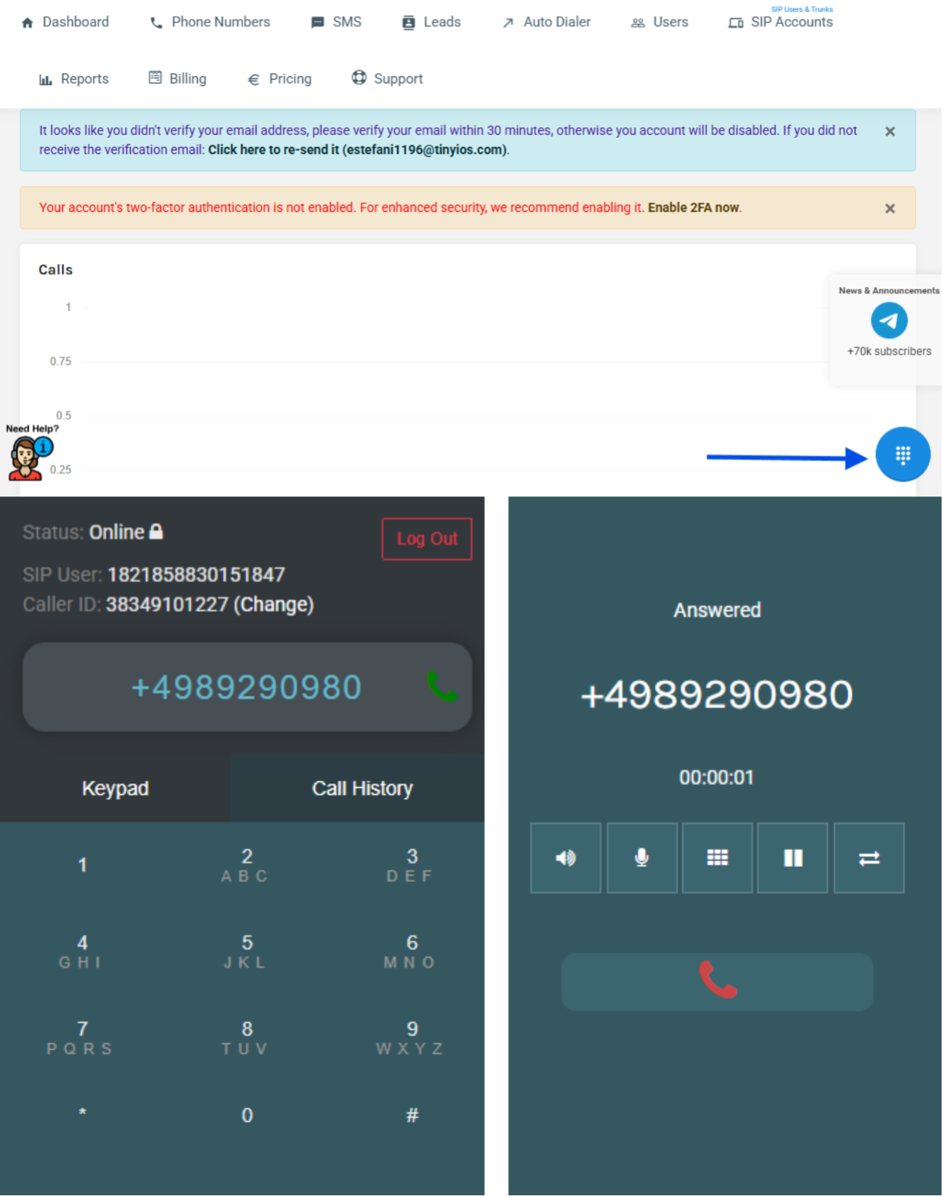 Once the Routing plan and Caller ID are set, you’re all set to start calling! You can use our web dialer to make calls directly from your browser—no extra setup needed.